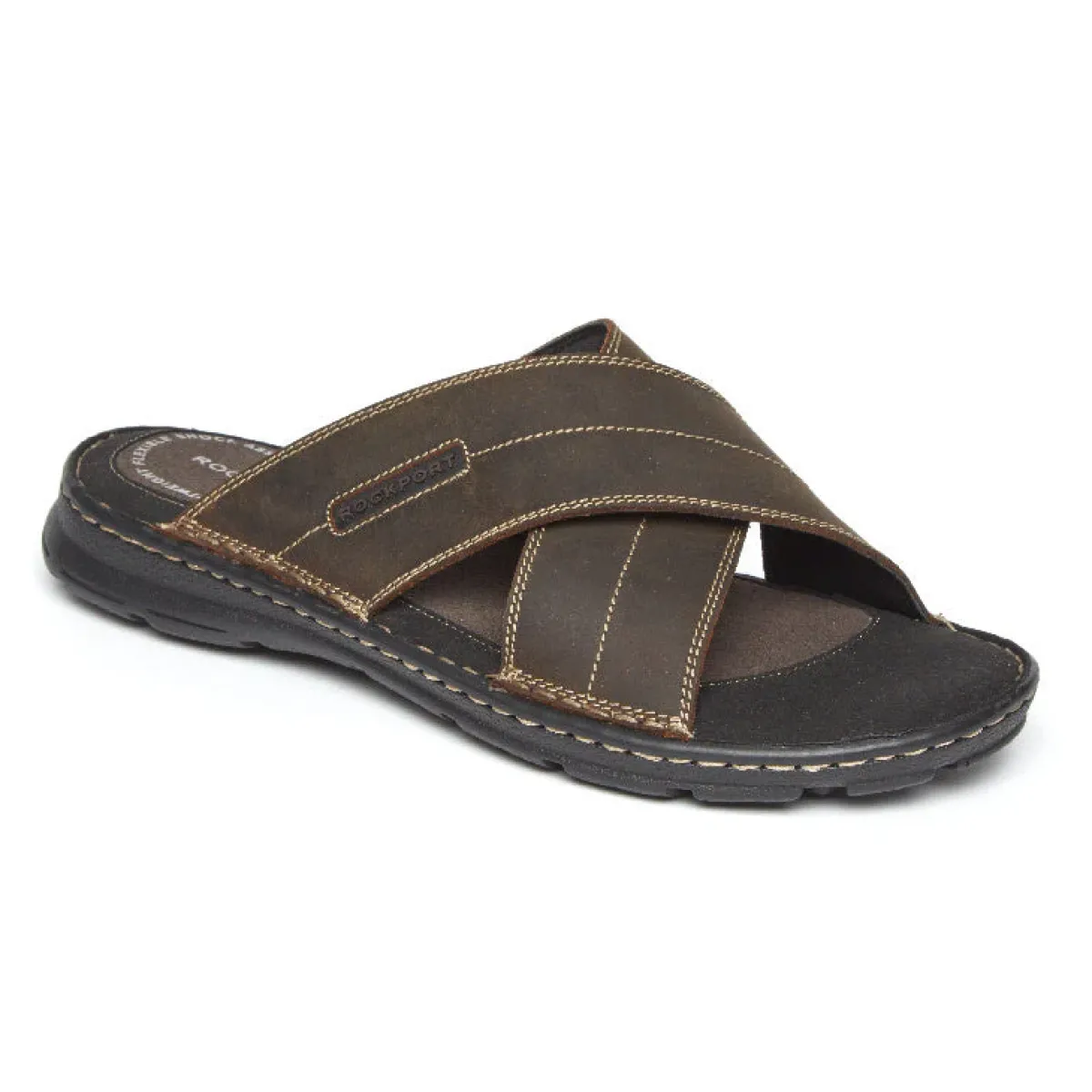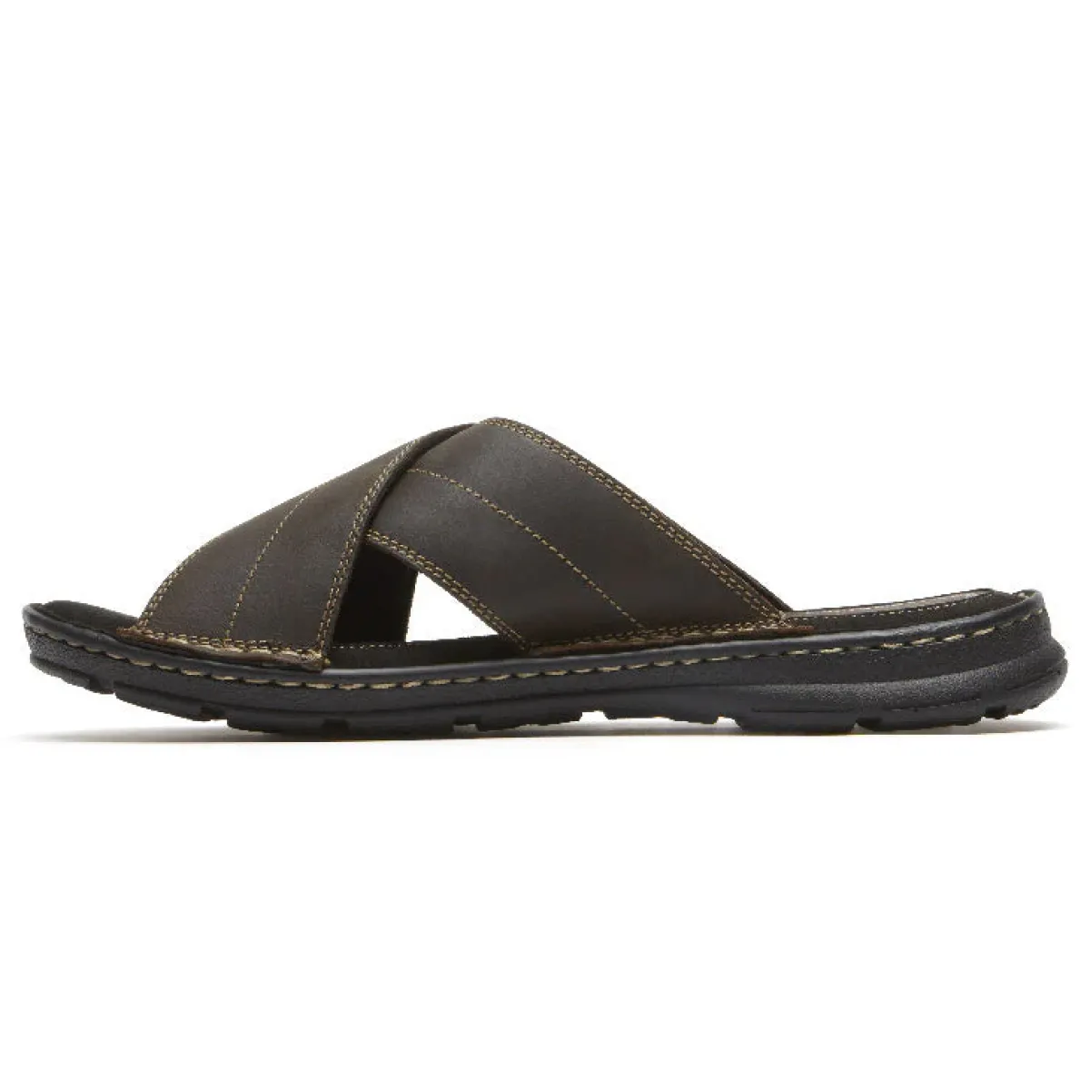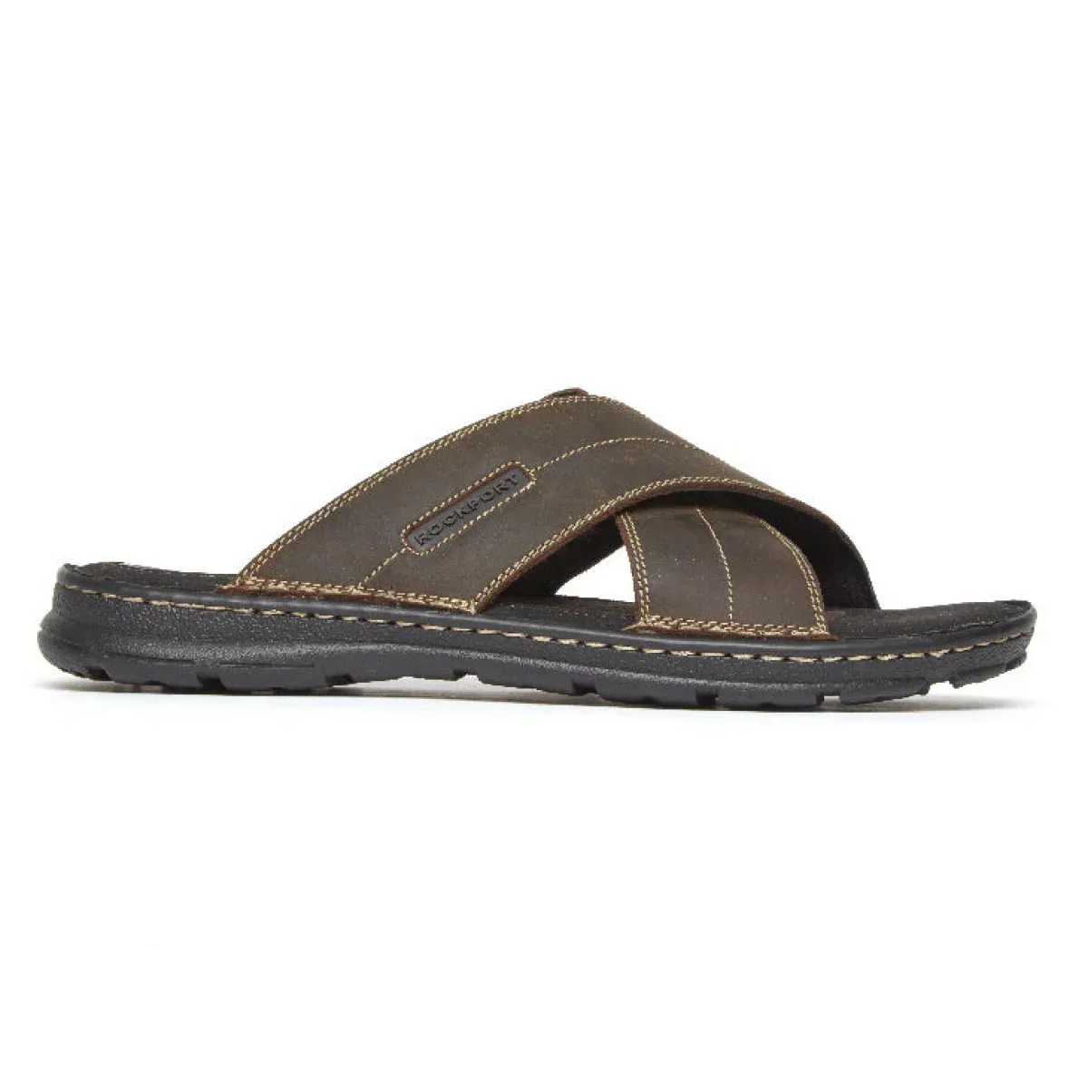 Sandálias>Rockport Slide Masculino Darwyn Cross Band Couro Marrom Ii